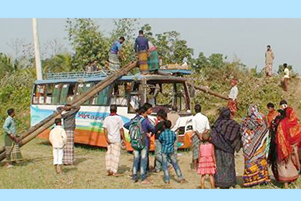 রাজবাড়ী-কুষ্টিয়া আন্তঃমহাসড়কের মাছপাড়ায় রসুলপুর মাহফিলগামী বাস নিয়ন্ত্রণ হারিয়ে নিহত-২॥১০জন আহত
