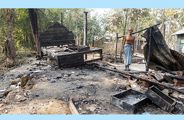 কালিকাপুর ঝাউগ্রামে অগ্নিকান্ডে সর্বস্ব পুড়ে নিঃস্ব একটি পরিবার